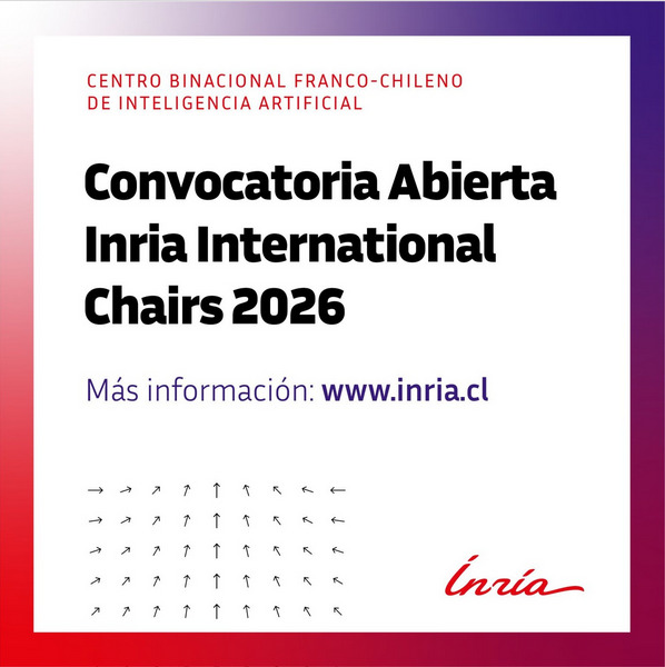 Más información Convocatoria Abierta Inria International Chairs 2026 Centro Binacional Franco-Chileno de Inteligencia Artificial El Centro Binacional Franco-Chileno abre convocatoria a Inria International Chairs 2026 Fecha límite: 22 de septiembre 2025 INRIA 2026
