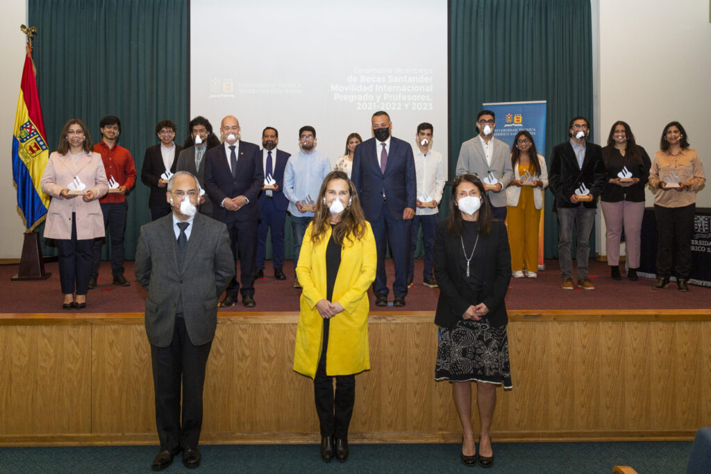 En países como España, México, Bélgica, Francia e Italia, entre otros, podrán cursar pasantías y estadías de especialización los dieciséis estudiantes y las tres profesoras de la Universidad Técnica Federico Santa María, que obtuvieron este año las becas Santander Movilidad Internacional Pregrado y Santander Movilidad Internacional Profesores para el período 2021-2022 y 2023, que fueron entregadas por Banco Santander.