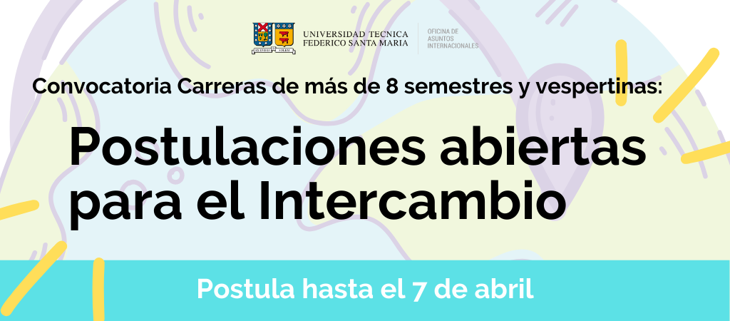 4ta Feria de Intercambios USM – Participarán universidades en convenio. Podrás conocer más sobre ellas y resolver tus dudas directamente. La actividad se realizará del 3 y 5 de mayo, de 12:00 a 14:00 hrs, a través de la plataforma Zoom. Para participar, debes inscribirte en el siguiente formulario y recibirás el enlace a la actividad.