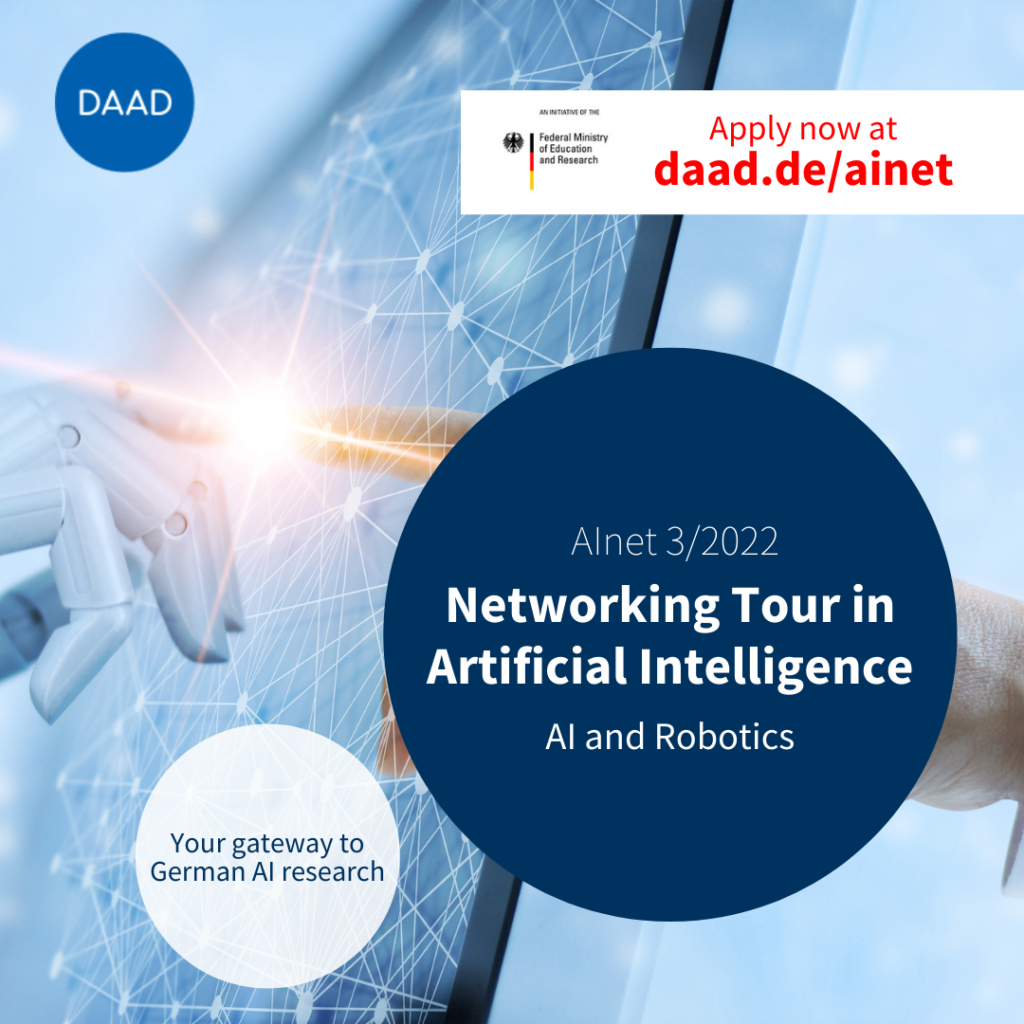 La beca AInet del DAAD se concede dos veces al año a un grupo de destacados investigadores internacionales que inician su carrera en el campo de la inteligencia artificial. Los premiados serán invitados a participar en el Postdoctoral Networking Tour in Artificial Intelligence (Postdoc-NeT-AI), un programa híbrido de creación de redes que les pone en contacto con investigadores de primera línea con el objetivo de iniciar colaboraciones y oportunidades profesionales.